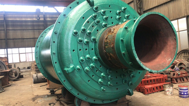 溢流型球磨機(jī)筒體用厚度15-36mm的鋼板焊接而成,在筒體的兩端焊有鑄鋼制造的法蘭盤,用螺栓將端蓋2和3與法蘭盤連接在一起,二者須精密加工和配合,因?yàn)槌休d磨礦機(jī)質(zhì)量的中空軸頸焊在端蓋上。在筒體上開有1-2個(gè)人孔,供檢修和更換襯板用。筒體和端蓋內(nèi)部敷設(shè)有襯板5。端蓋上的中空軸頸支承在主軸承4上。主軸承常用的是滑動(dòng)軸承,其直徑很大,但長(zhǎng)度很短。軸瓦用巴氏合金澆鑄,與一般滑動(dòng)軸承不同之處在于僅僅下半部有軸瓦。整個(gè)軸承除軸瓦用巴氏金澆鑄外,其余用鑄鐵制成。由于球磨機(jī)的跨度和載荷很大,將發(fā)生一定程度的撓曲,而且制造和裝配的誤差也難以保證準(zhǔn)確的同心度,因此主軸承制成自動(dòng)調(diào)心滑動(dòng)軸承,為防止軸瓦轉(zhuǎn)位過大而從軸承座中滑出,在軸承座與軸瓦的球面***放一圓柱銷釘。